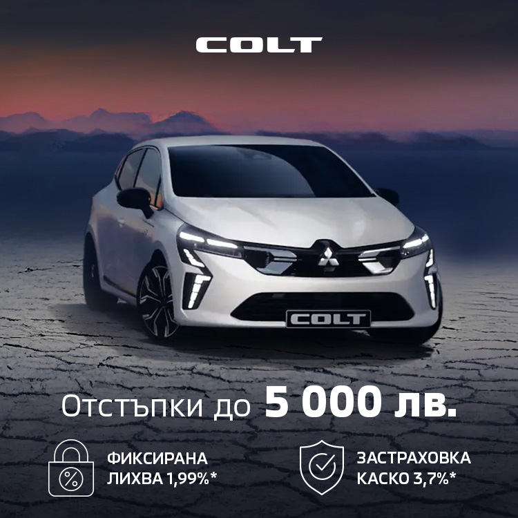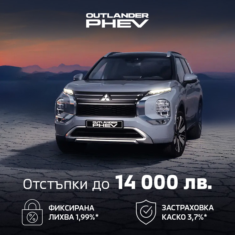 Изберете сега Вашия автомобил от нашата гама, като се възползвате от специалните отстъпки до 26 000 лв. за Eclipse Cross PHEV, до 14 000 лв. за новия Outlander PHEV и до 5 000 лв. за COLT, фиксираната лихва 1,99%* и 3,7%** авто каско с допълнително покритие.