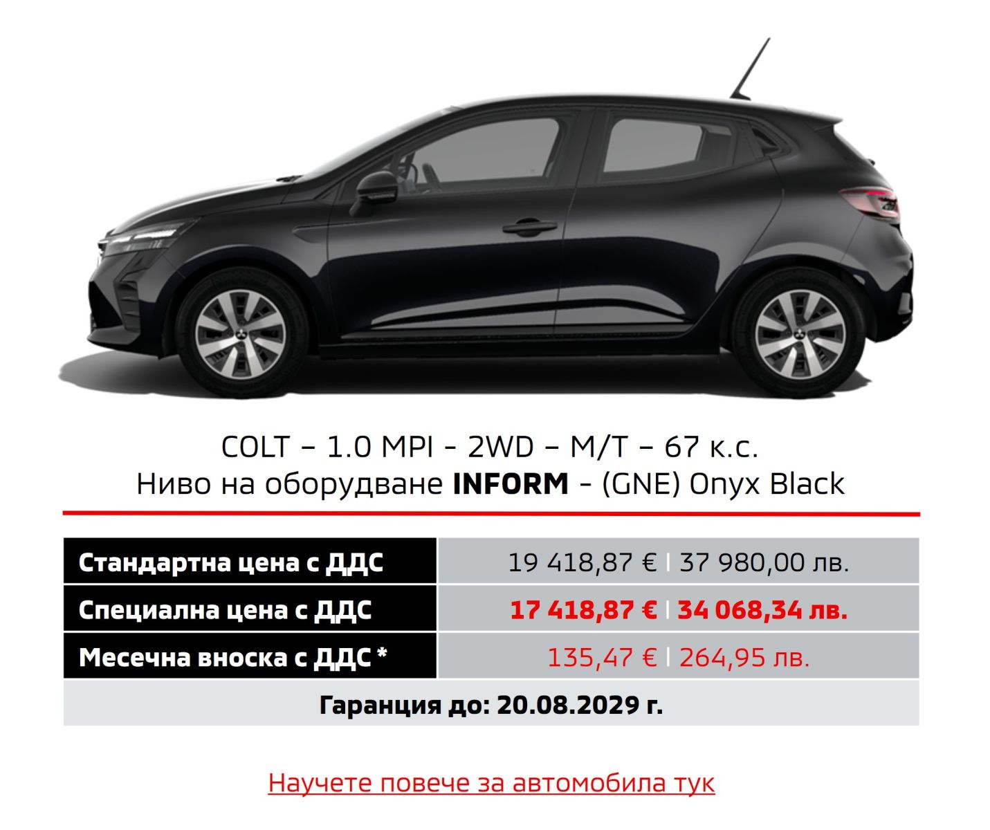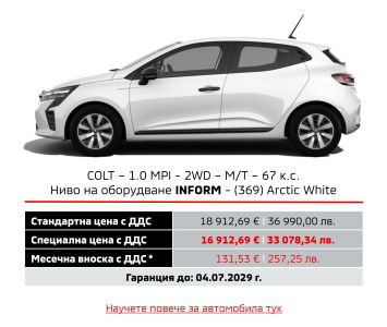 Вземете сега COLT, с още по-атрактивно ценово предимство до 3 500, €/6 845,41 лв.